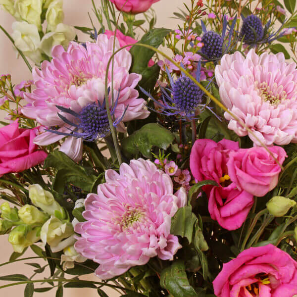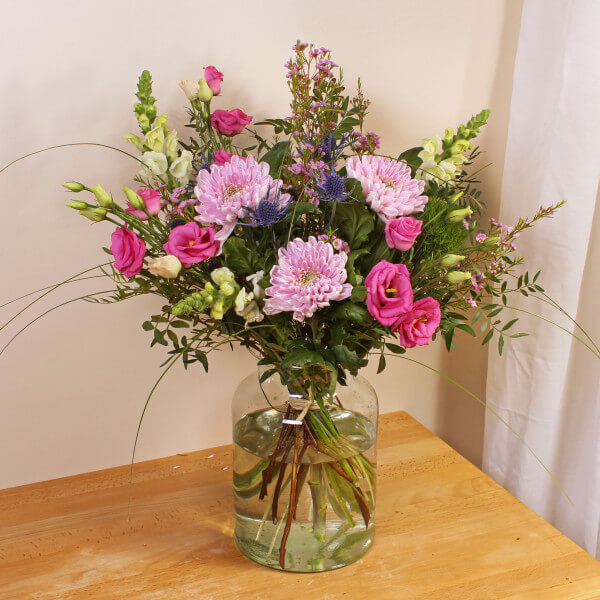 A classic, handcrafted bouquet of Antirhinum, Chrysanthemum and Lisianthus, these beautiful flowers will fill you with awe and make you drop your jaw! Available for same day delivery, these are the ideal last minute Mother’s Day gift.