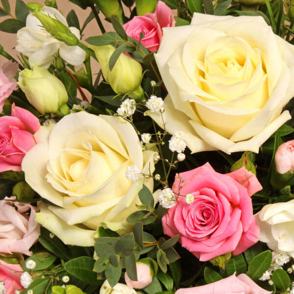 The Sophia Hatbox. is a beautiful, versatile assortment of Freesias and Roses in pastel hues and makes the perfect gift for any occasion from Weddings, to Birthdays or even funerals.
